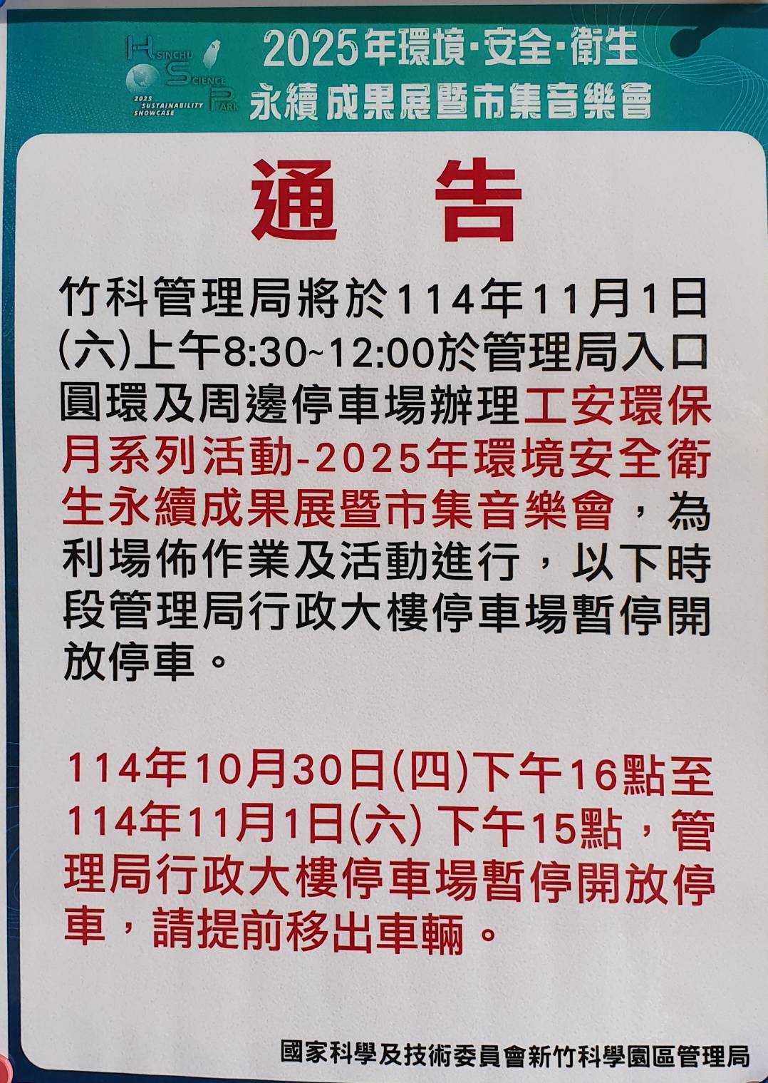 114年10月30日(四)下午4點至114年11月1日(六)下午3點,管理局行政大樓停車場暫停開放停車,請提前移出車輛